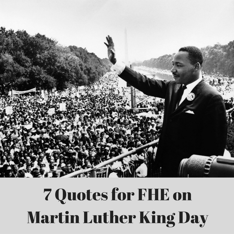 In honor of Martin Luther King Day next Monday, I’ve collected seven quotes for you to share during family home evening, or, if you prefer, you can read one quote per day as you follow along with the scriptures for Martin Luther King Day in FHEasy. I’m giving them out a week early to remind those of you who are busy with LIFE that the holiday is coming up and you might want to center your FHE around it and have some family discussions about it throughout the week.